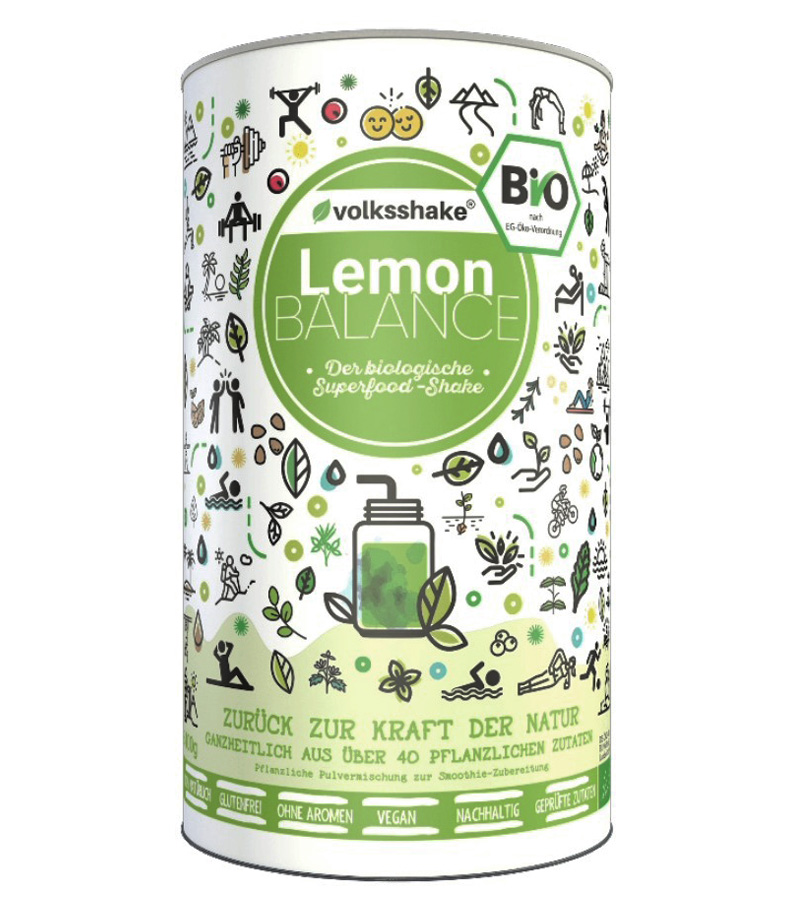 Sestavine: prah pšenične trave*, prah limonske trave*, prah ječmenove trave*, prah moringe*, prah lucerne*, prah pire*, aroma limone, prah spiruline (SULFIT)*, prah ašvagande*, prah mace*, prah kurkume*, prah lanenega semena*, prah lupine indijskega trpotca*, prah grozdnih pešk*, prah cejlonskega cimetovega lubja*, prah reishi gobe*, prah šitake gobe*, prah klorelle (SULFIT)*, prah listov melise*, prah chia semen*, zgoščevalec: guar gumi*, prah špinače*, prah acerole*, prah lupin šipka*, prah koprive*, prah rožmarina*, prah semen grškega sena*, prah acai gobe*, prah matcha*, prah rdeče pese*, prah goji jagod*, prah limonine lupine*, inulin*, prah borovnic*, prah brokolija*, prah ingverja*, konopljine beljakovine*, prah pegastega badlja*, prah listov peteršilja*, prah regrata*, prah zelišča izopa*, prah zelene*, prah ohrovta*